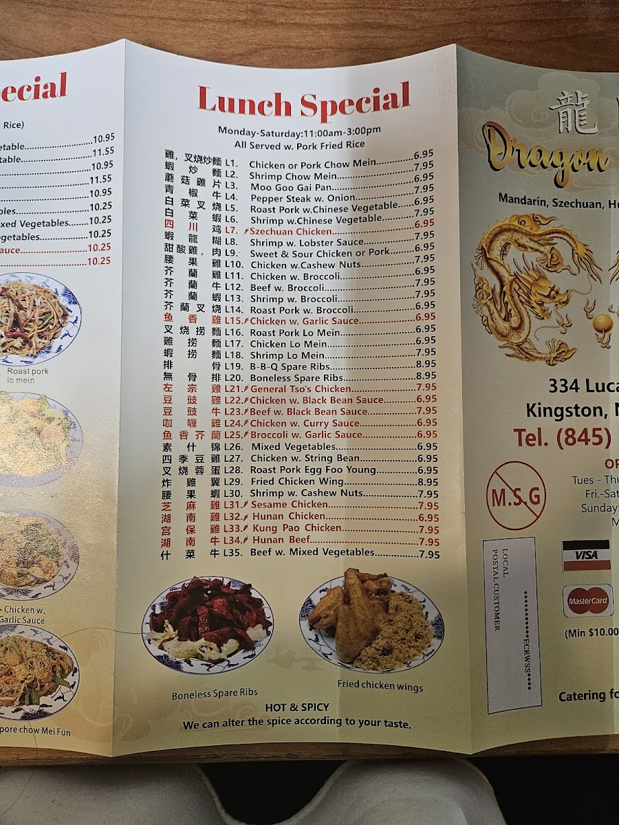 Overall, the menu reflects the unpretentious, everyday appeal of Dragon Garden, where familiar Chinese fare is enjoyed in a straightforward setting—ideal for those moments when a warm, reliable meal fits the bill.